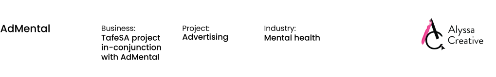 This work was created for AdMental and due to the requirements of the brief, it required a lot of critical and creative thinking. The brief required a poster and Facebook banner that advertises the event of AdMental. Therefore, it was important to represent AdMental and not depict stereotypical mental health graphics while still representing the idea of talking about mental health or what is on one’s mind. This challenge on advertising the event rather than depicting mental health required pushing variations throughout the creative process which eventually led me to my final design.