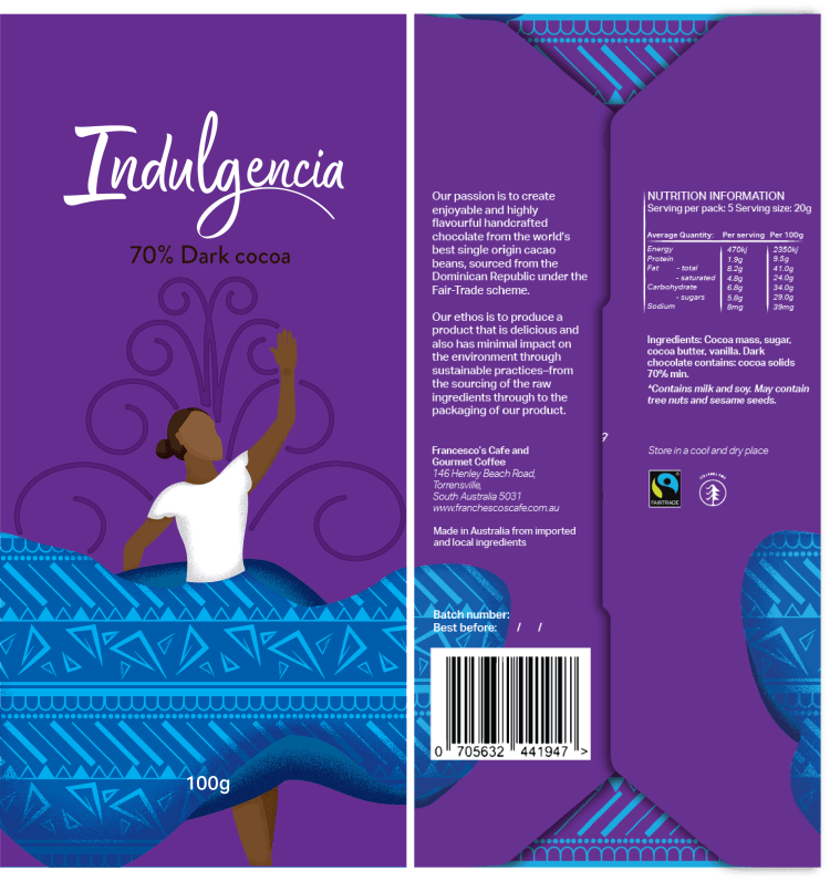 Indulgencia resonates and presents the feeling of treating yourself to delicious taste of chocolate.